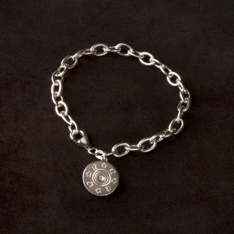 Silver bracelet with cartridge charm